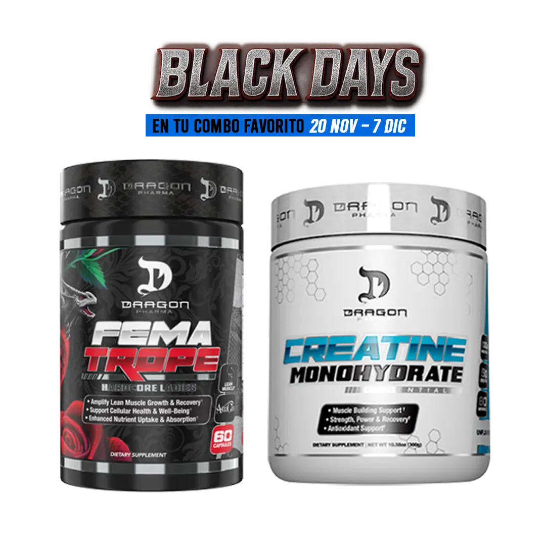 El combo Fematrope + Creatina 300 g de Dragon Pharma es una combinación ideal para mujeres que desean acelerar sus resultados en el gimnasio: más fuerza, más recuperación y más músculo magro sin afectar el equilibrio hormonal.