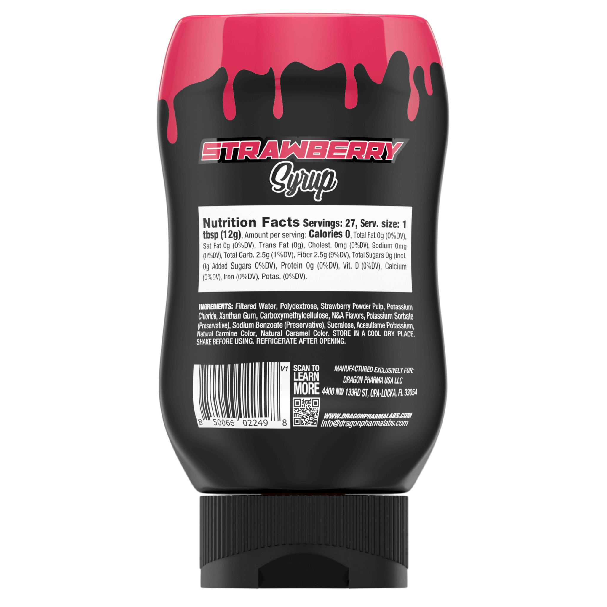 Disfruta el auténtico sabor a fresa sin ingredientes innecesarios. Strawberry Syrup de Dragon Dips de Dragon Pharma ofrece un perfil dulce y vibrante con cero azúcar, cero calorías y cero sodio por porción, ideal para transformar tus desayunos y postres diarios.